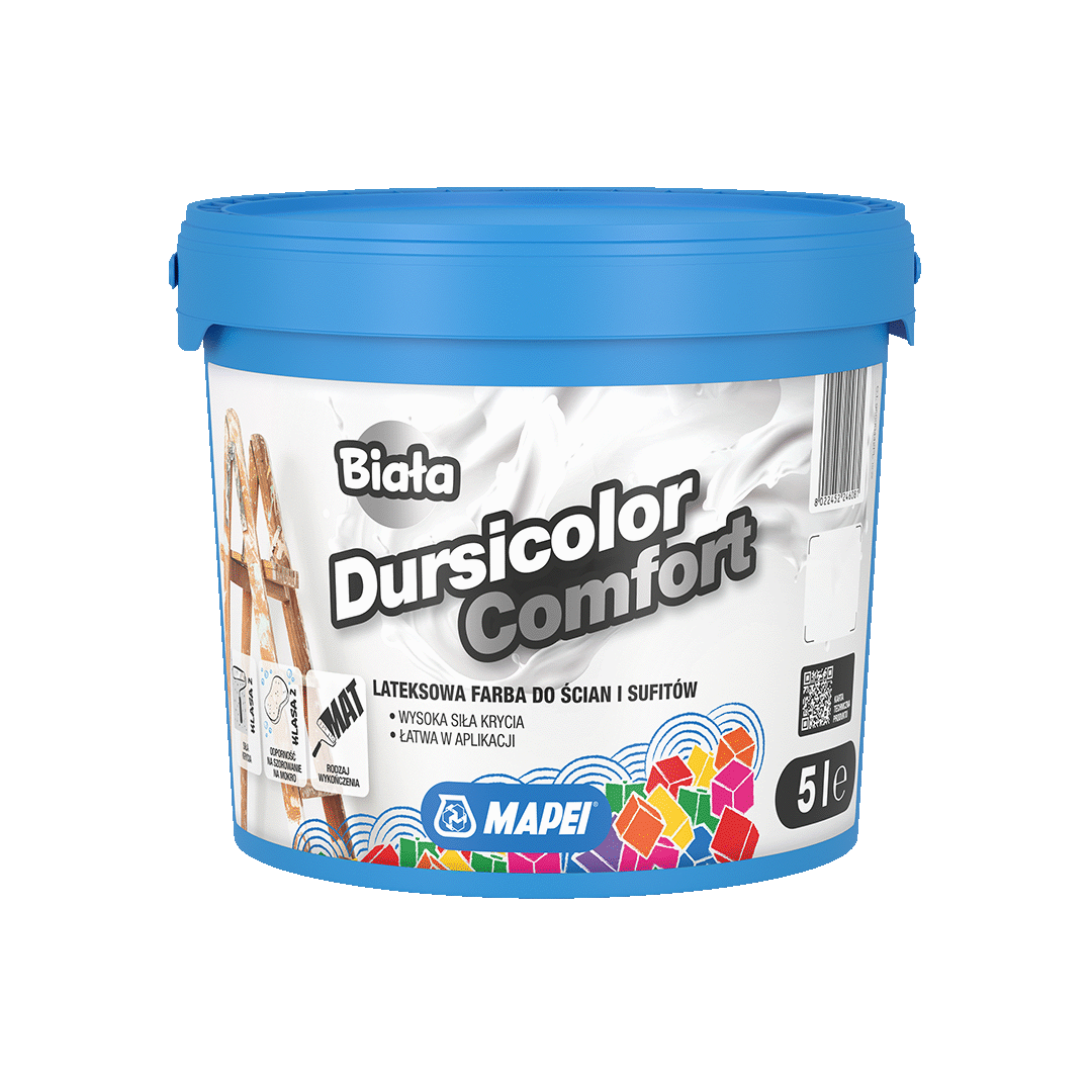 DURSICOLOR COMFORT to wysokiej jakości lateksowa farba wewnętrzna oparta na żywicy akrylowej, idealna do ścian i sufitów. Jej główne zalety to doskonała siła krycia i łatwość aplikacji, co czyni ją świetnym wyborem zarówno dla profesjonalistów, jak i osób wykonujących prace malarskie samodzielnie.