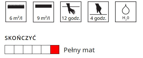 | Zużycie | 6–9 m²/l (przy jednokrotnej warstwie) |