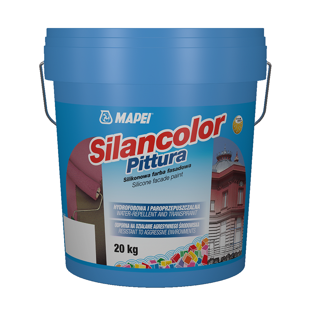 SILANCOLOR PITTURA to farba silikonowa przeznaczona do tworzenia dekoracyjno-ochronnych powłok na ścianach zarówno na zewnątrz, jak i wewnątrz budynków. Charakteryzuje się doskonałymi właściwościami hydrofobowymi, co zapobiega wchłanianiu wilgoci, oraz wysoką przepuszczalnością pary wodnej, pozwalając podłożu „oddychać”. Dzięki tym cechom zapewnia trwałą ochronę ścian oraz estetyczne wykończenie powierzchni.