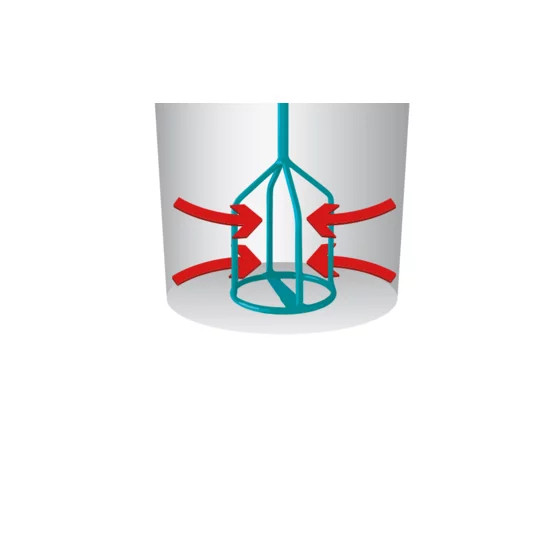 - Dzięki specjalnej konstrukcji szybko miesza materiały z dodatkami proszkowymi lub włóknistymi, minimalizując intruzję powietrza.