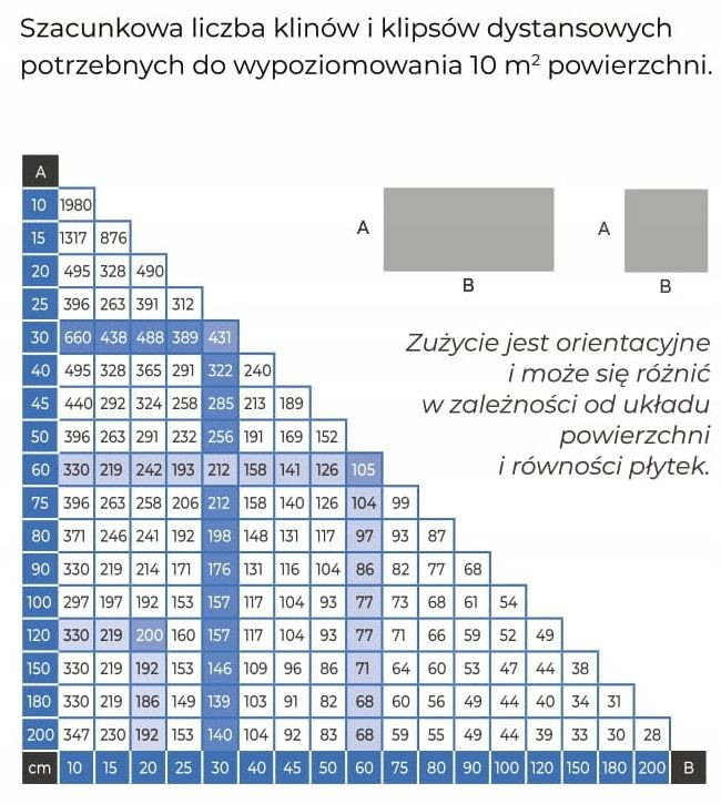 - Szybki demontaż – klipsy łamią się poniżej powierzchni płytek, co ułatwia ich usunięcie.
