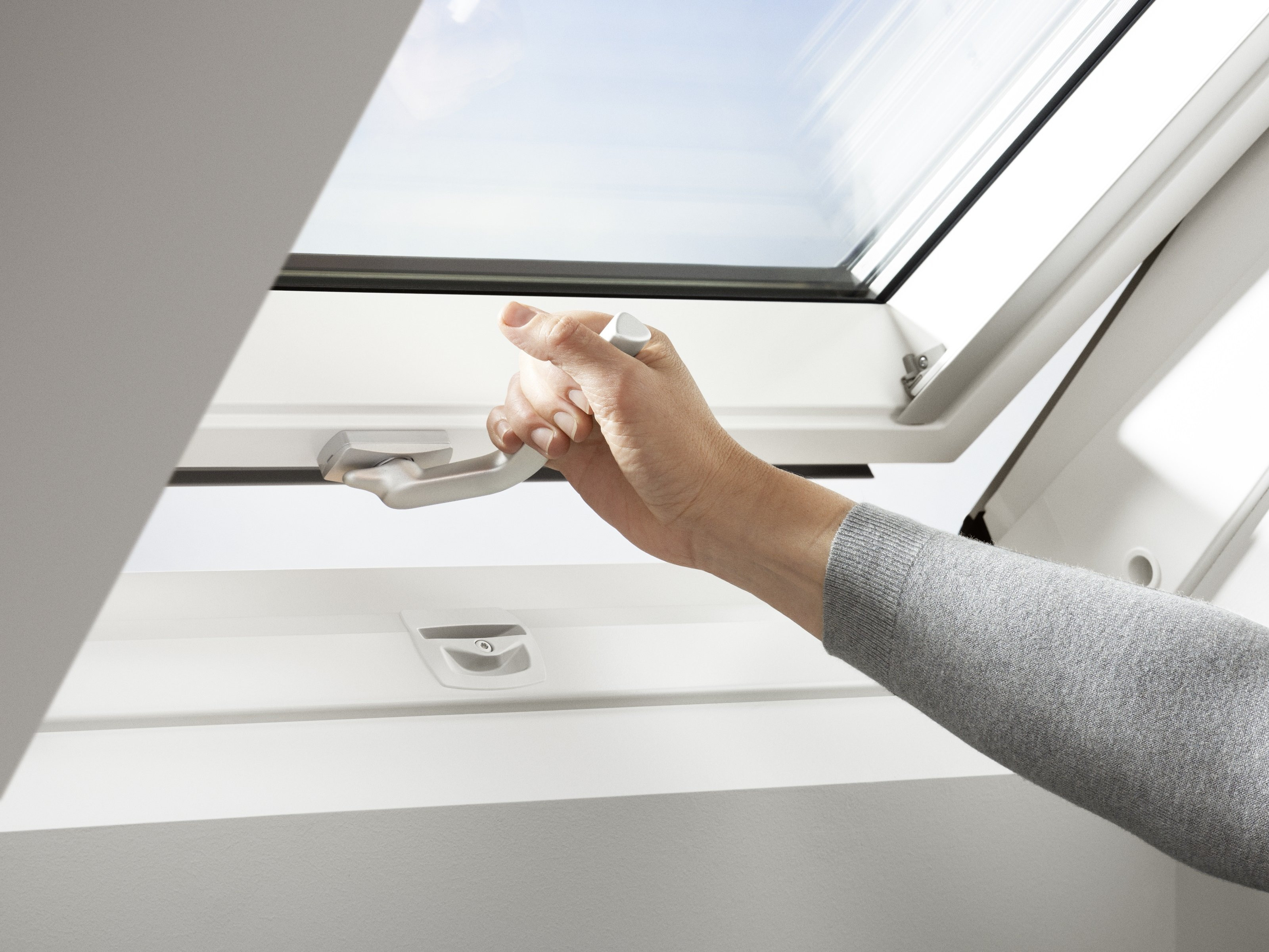 VELUX GLU 0061B to obrotowe okno dachowe z białym wykończeniem, wykonane z drewnianego rdzenia pokrytego ciśnieniowo warstwą poliuretanu. Doskonale sprawdza się w pomieszczeniach o wysokiej wilgotności, takich jak łazienki czy kuchnie. Współczynnik przenikania ciepła wynosi Ug=0,6, a całkowity Uw=1,1.