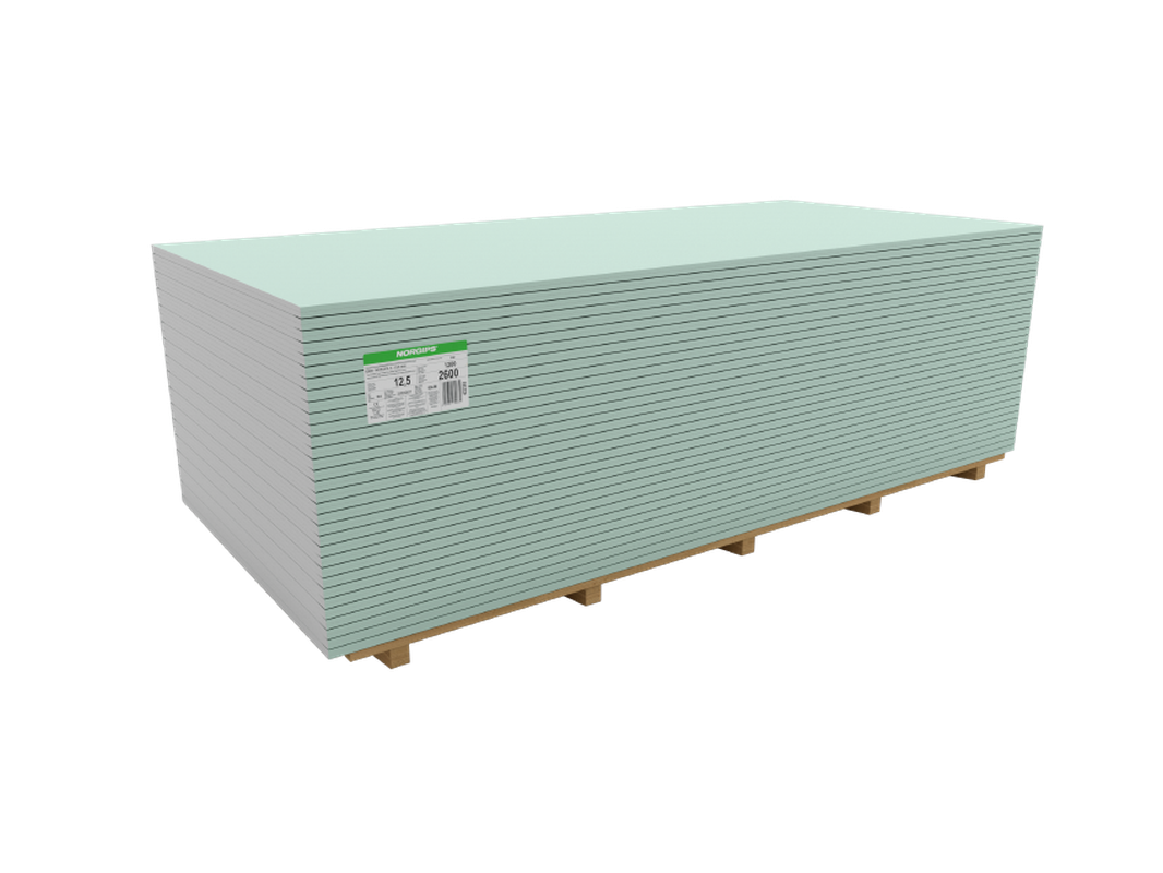 NORGIPS Płyta gipsowo-kartonowa impregnowana – do pomieszczeń wilgotnych S GKBI 12,5 mm typ H2 (1200 x 2000 mm)