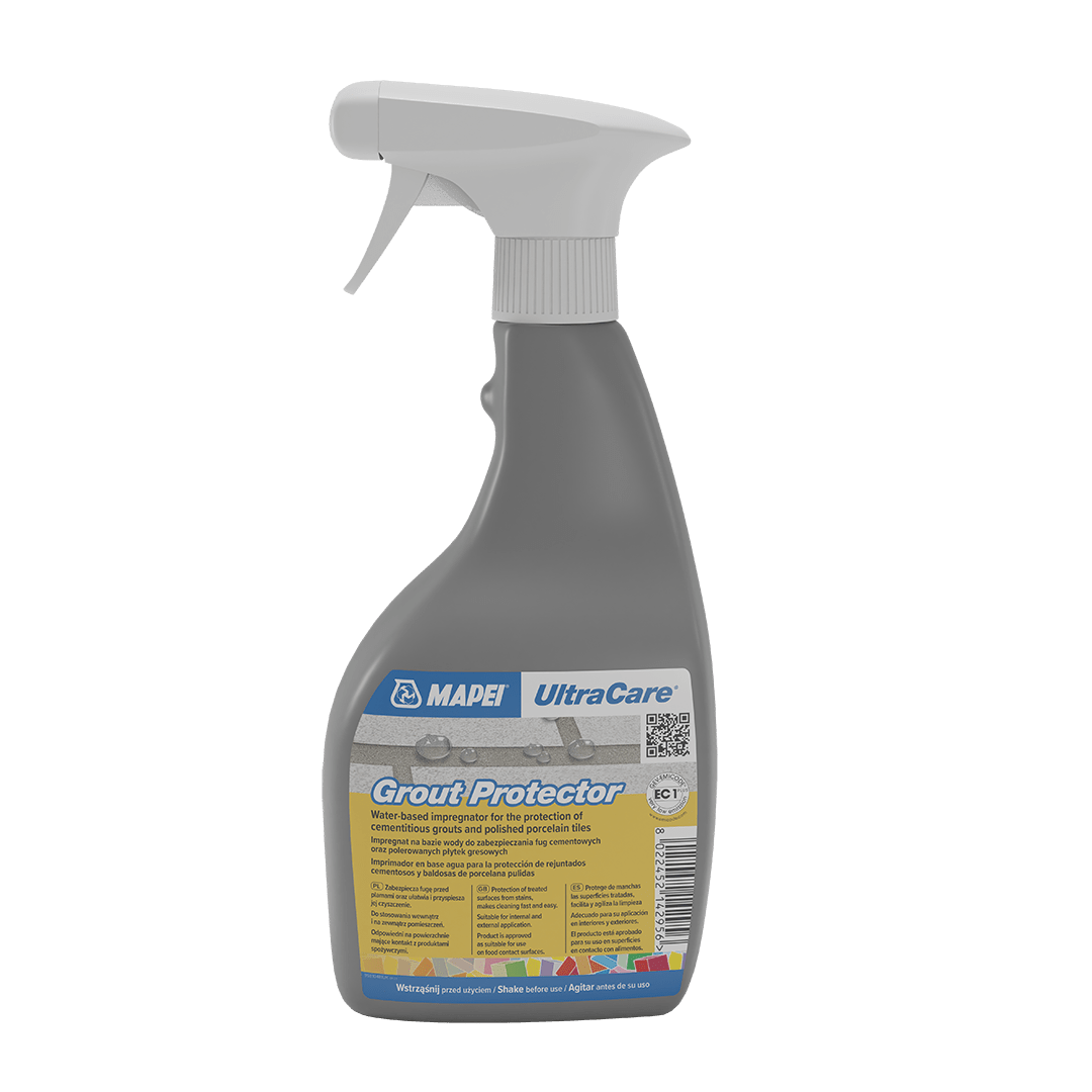 UltraCare Grout Protector to wysokiej jakości impregnat na bazie wody, przeznaczony do zabezpieczania fug cementowych oraz polerowanych płytek gresowych.