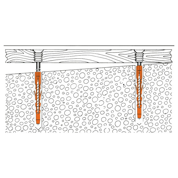 Wkręt należy wkręcić do podstawy mocującej (np. belki drewnianej) przez listwę nośną, tak aby był wpuszczony w belkę. Następnie listwy nośne można precyzyjnie wyregulować, obracając wkręt w przeciwnym kierunku.